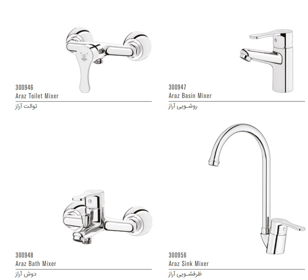 سری کامل شیرآلات کاویان مدل آرازناموجود